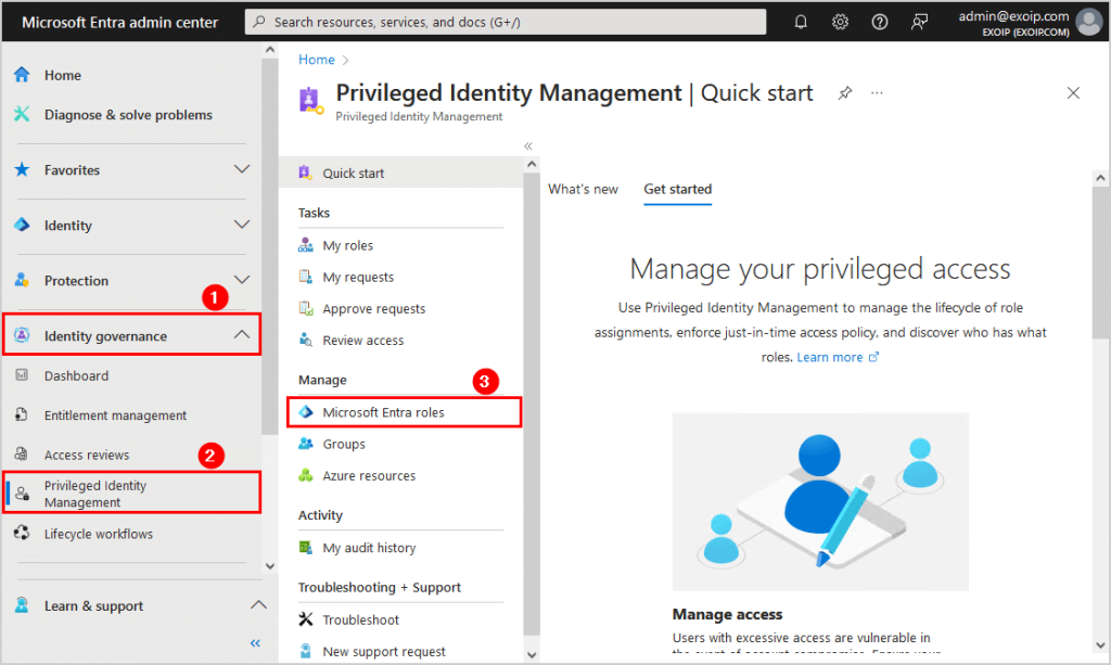 Pour un rôle plus important, un administrateur PIM est défini pour validation avec justification.